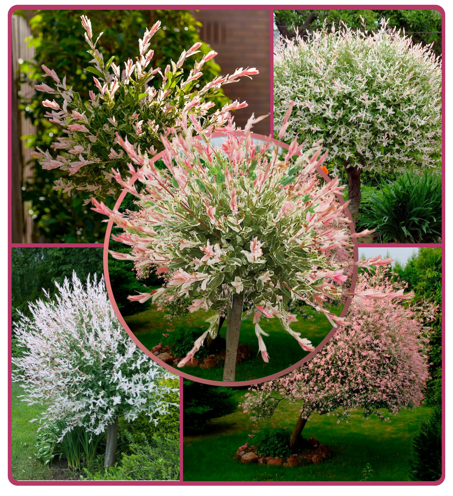 Эстетика и выразительность. Пестрая розово-белая листва и изящная крона украсят ландшафт вашего участка.